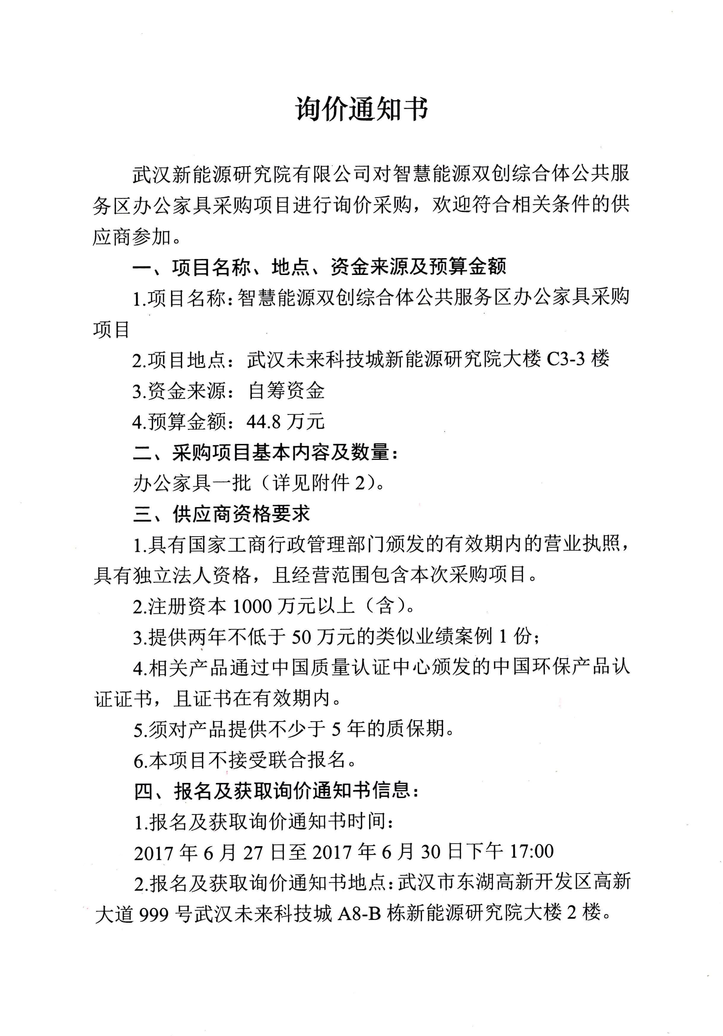 智慧能源双创综合体公共服务区办公家具采购项目询价通知书