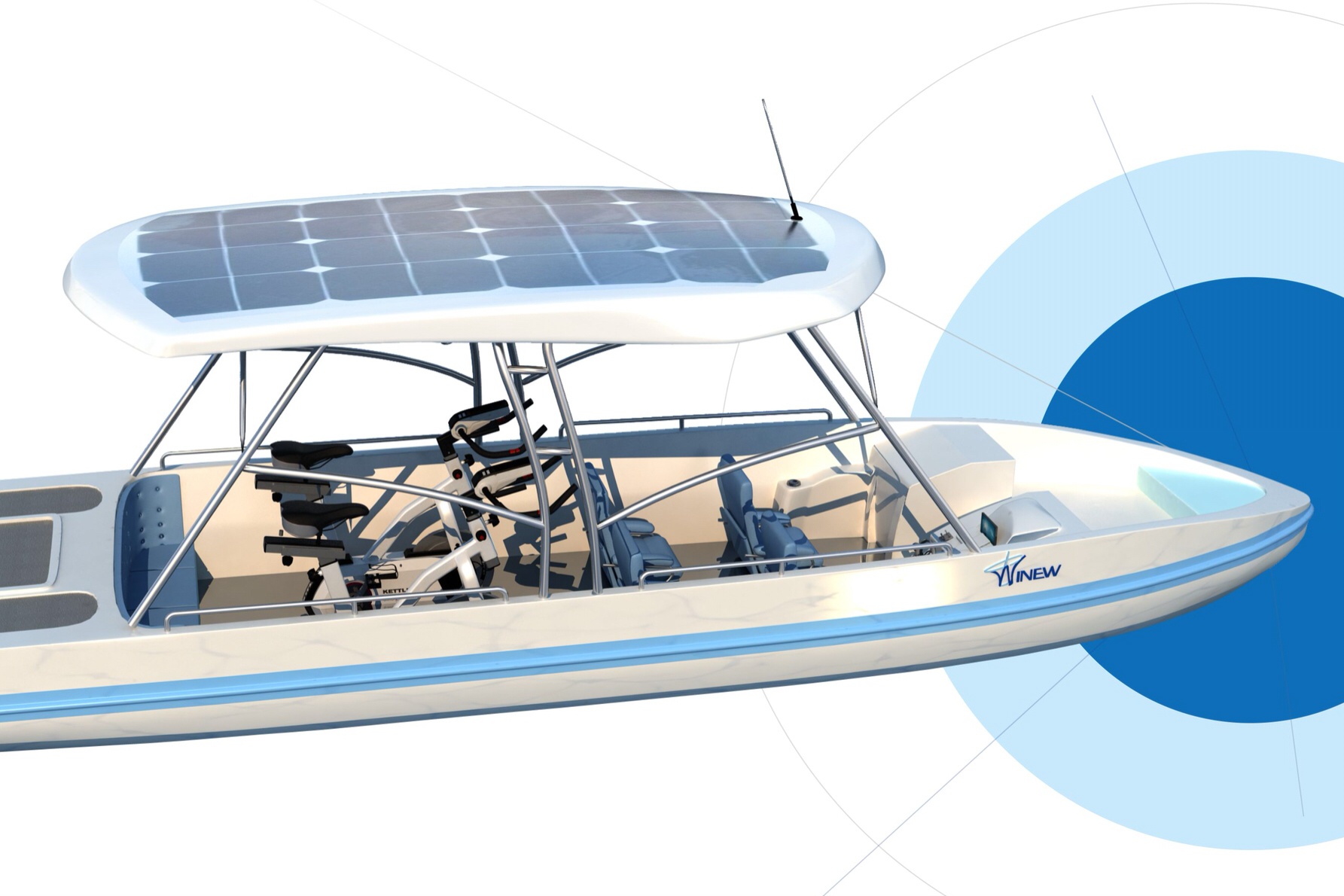 易波艇是研究院自主研发的一款集新能源应用、水上健康运动和竞技、观光旅游于一体的智能信息化电动游乐船。该船采用锂离子电池供电,同时可配备太阳能板充电。船载特有的功能配置将新能源应用与水上娱乐竞技相结合,游客在进行水上运动竞技的同时,可感受新能源技术应用带来的超乎想象的惊喜和体验。船载控制系统可协调船载运动设备与动力输出的控制,信息系统可实现游客游玩信息的统计分析和分享,实现多种模式的运动竞技娱乐活动。