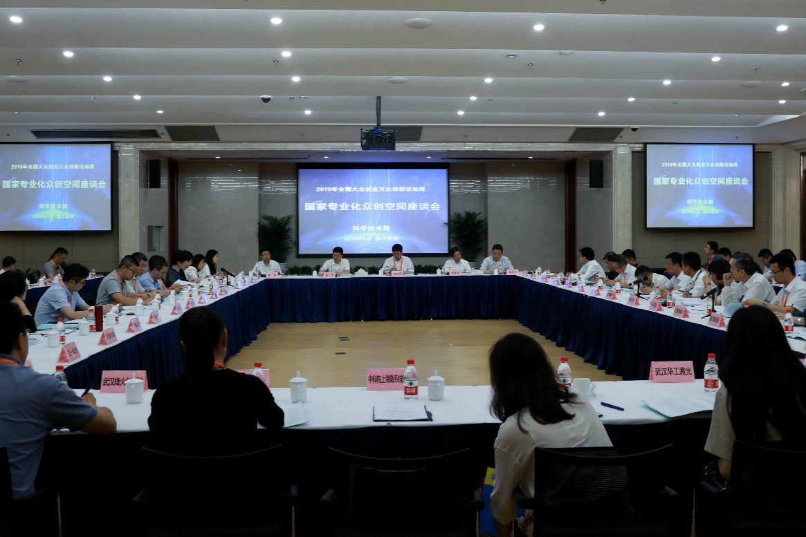 6月13日,在2019年全国双创活动周举办之际,国家科技部在杭州海创园召开了以“加强专业化众创空间示范 推动创新创业高质量发展”为主题的国家专业化众创空间座谈会,旨在交流创新创业进展成效及特色做法。科技部成果与区域司副司长杨咸武出席会议并讲话。北京、上海、天津、江苏、浙江、山东、河南、广东、湖北等地科技主管部门以及全国各地50家专业化众创空间负责人参加了座谈会。武汉新能源研究院副院长郑峻代表新能源国家专业化众创空间在座谈会上作了典型交流发言。