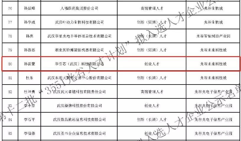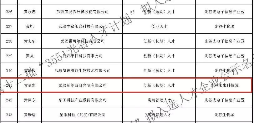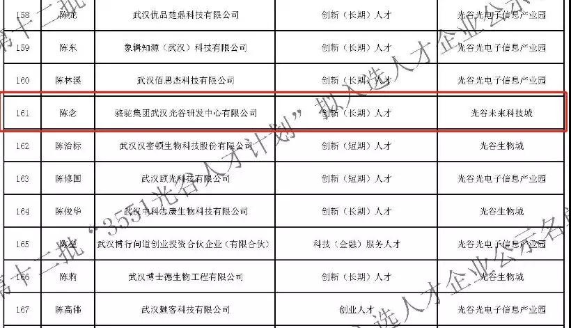 此次同时入选的还有5名来自新能源大楼入驻企业的优秀人才。他们分别是武汉惟景三维科技有限公司(刘玉宝)、华引芯(武汉)科技有限公司(孙雷蒙)、武汉极目智能技术有限公司(李磊)、武汉锐奥特科技有限公司(吴适)、骆驼集团武汉光谷研发中心有限公司(陈念)。