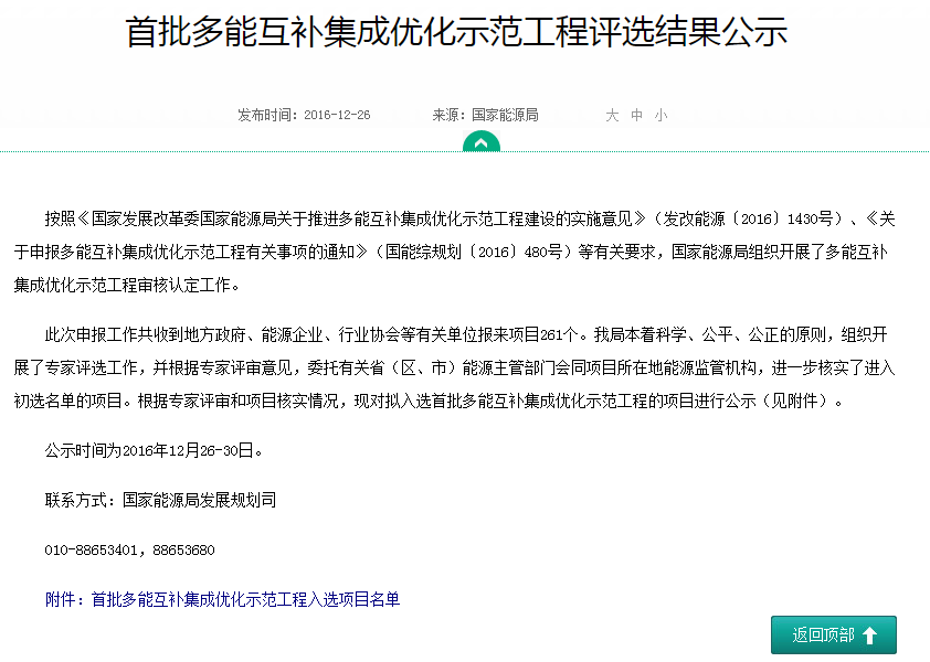 2016年12月26日,国家能源局发布了《首批多能互补集成优化示范工程评选结果公示》,由我院联合智慧能源集团、华中科技大学等单位申报的“武汉未来科技城多能互补集成优化示范工程”从全国261个有效申报项目中脱颖而出,入围了首批17个示范工程项目。