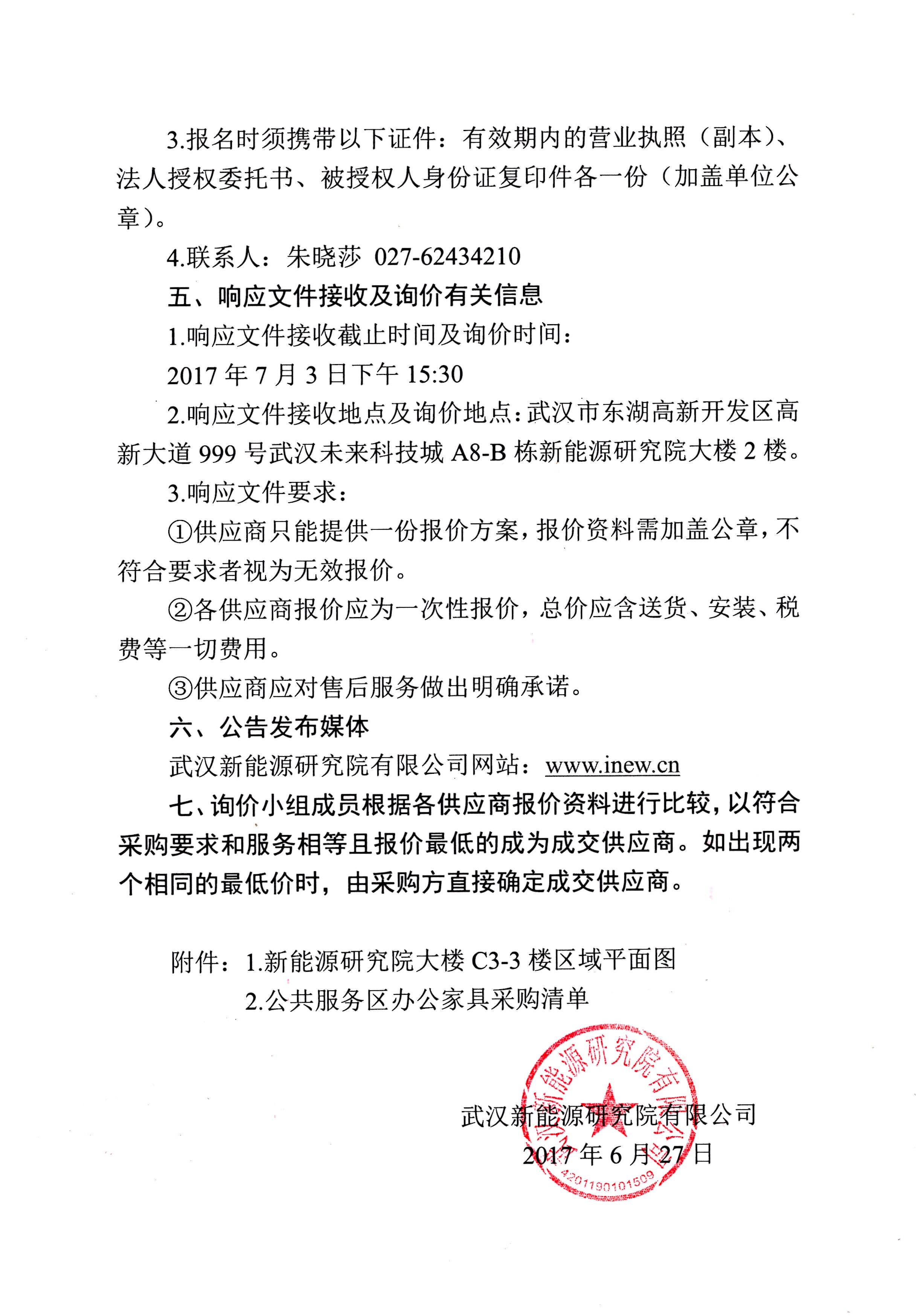 智慧能源双创综合体租赁区办公家具采购项目询价通知书